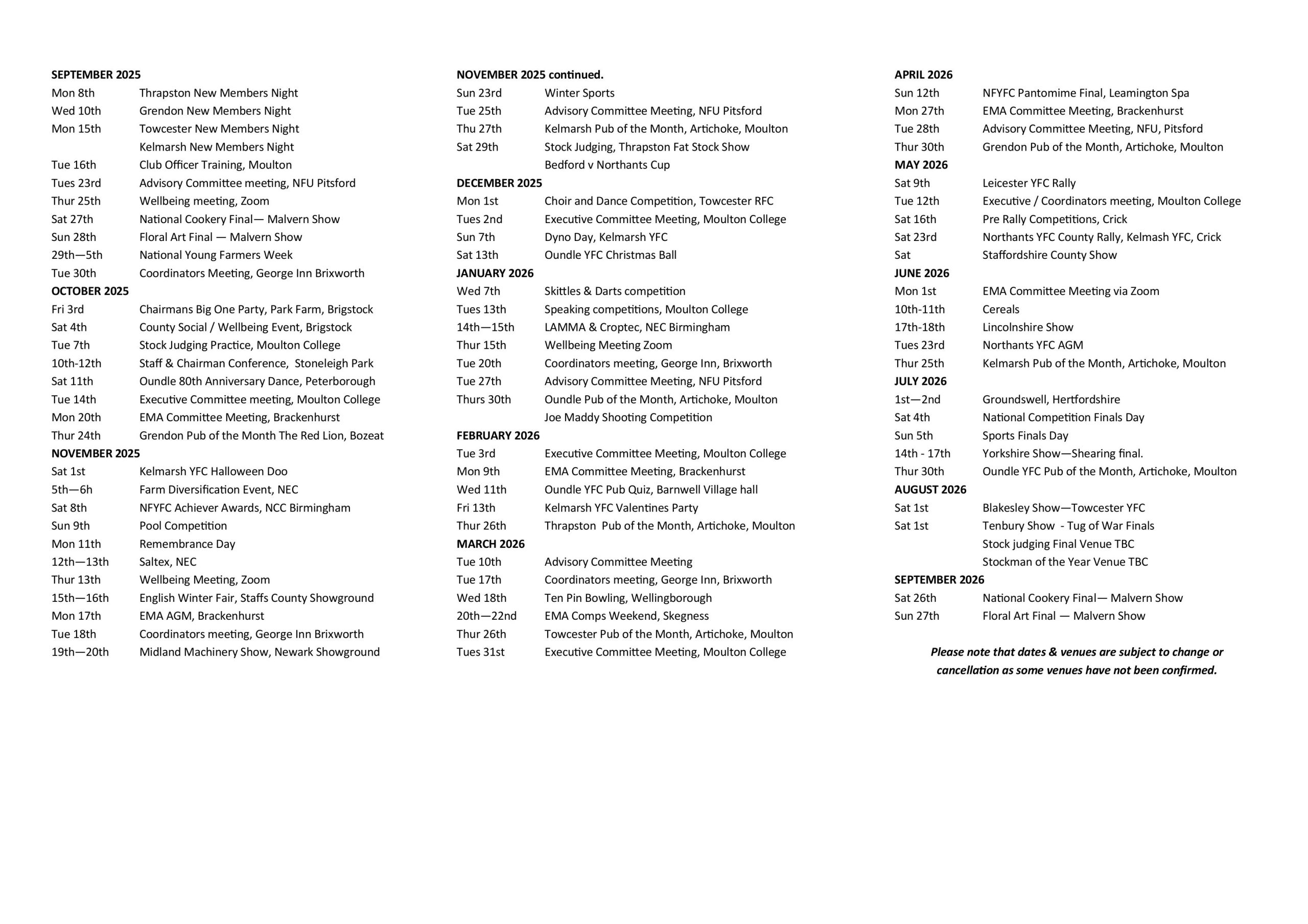 © Northampton Town & County Federation of Young Farmers' Clubs