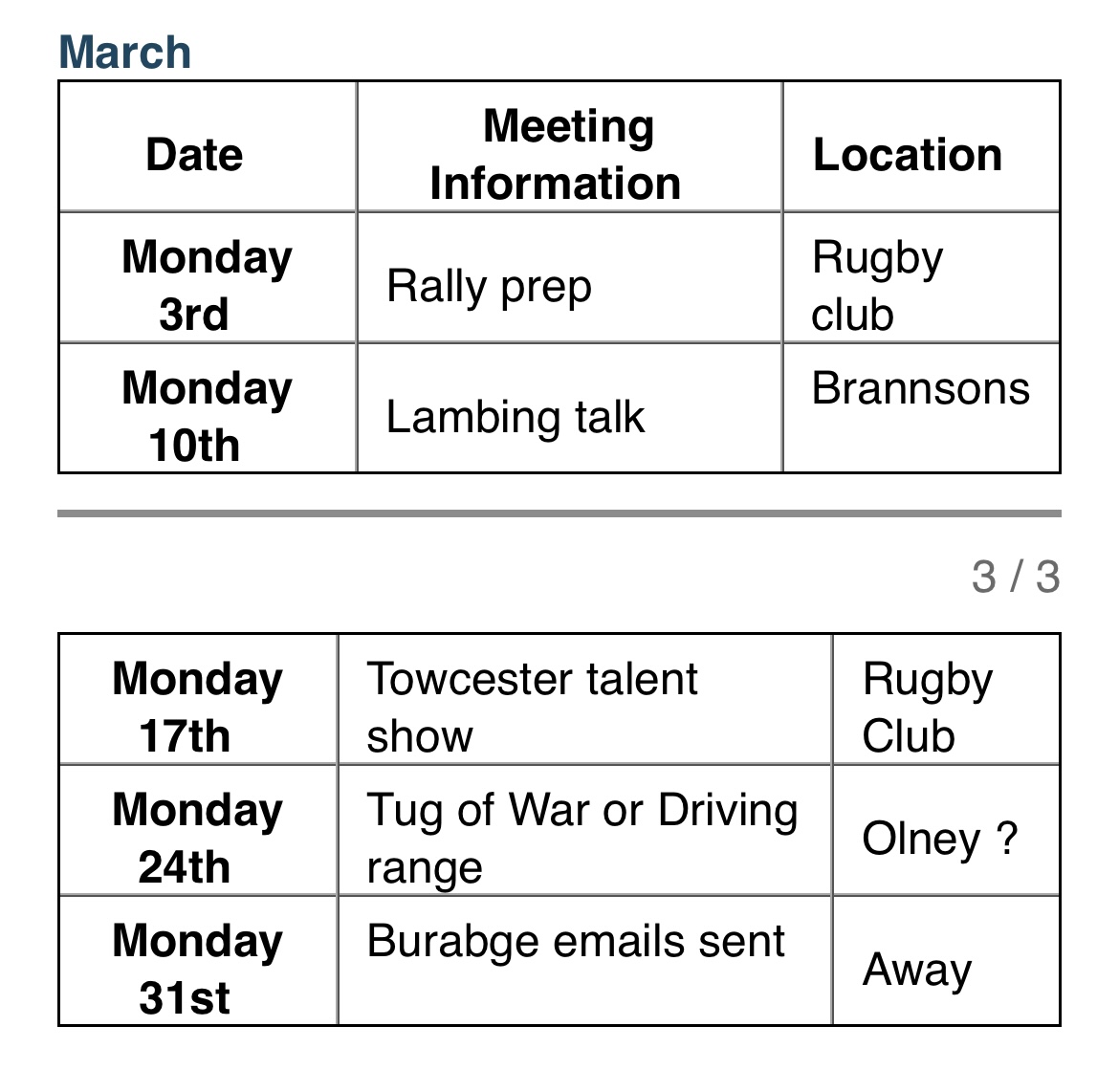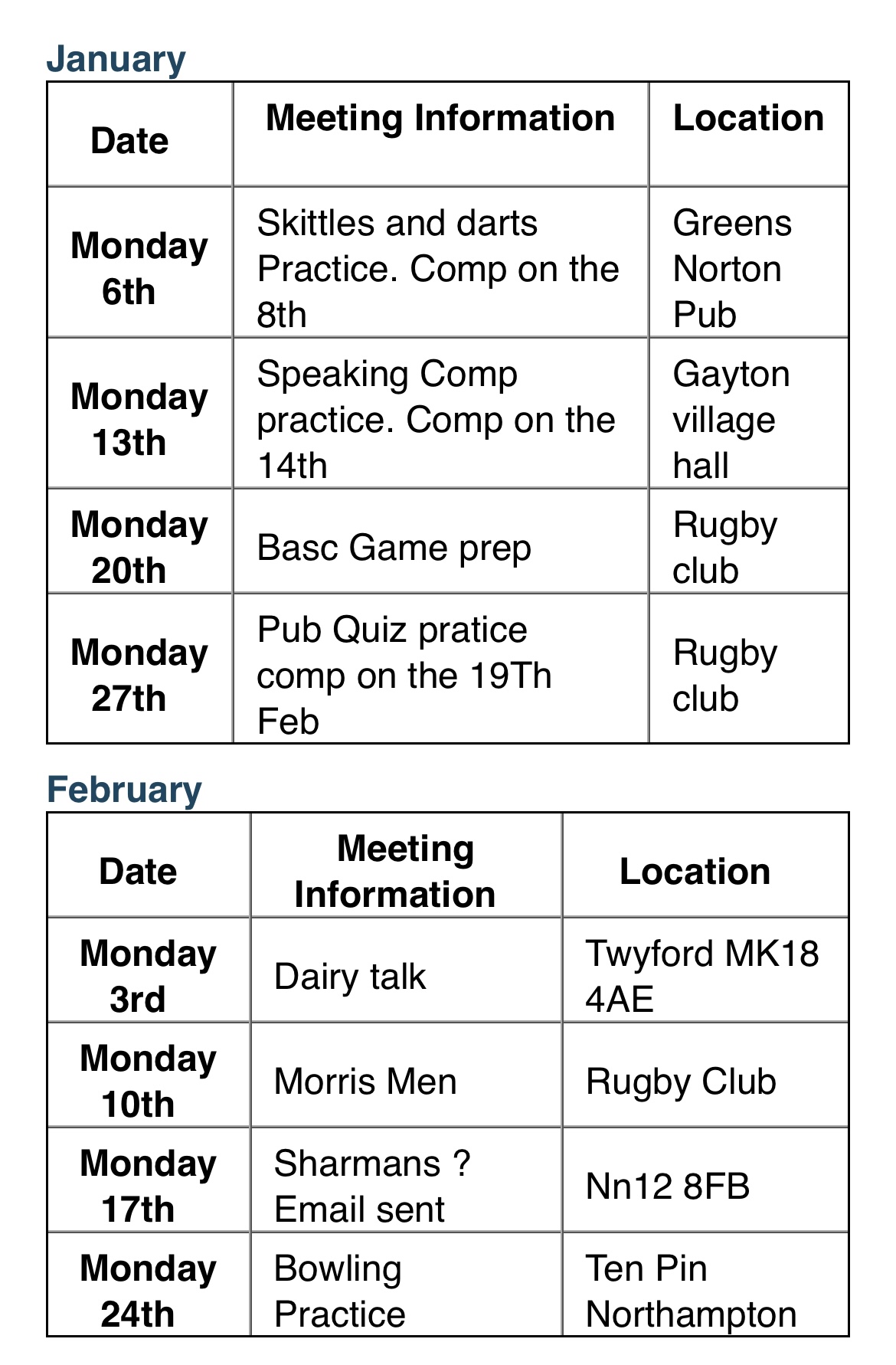 Meets on Monday see Calendar below for whats on and where
